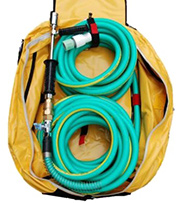 水道の蛇口に接続するだけで放水可能。便利なポータブルタイプなので、火災現場へすぐに駆け付けることが出来ます。特殊ノズルを使用しており、より広域に、より遠くに放水することができます。